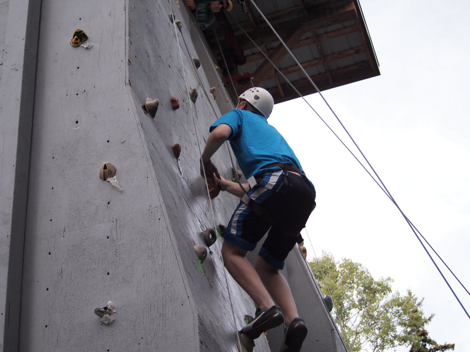 To your right: Amy, Jamie, Selena, and other campers watch the climbing (well, Amy's watching the photographer).